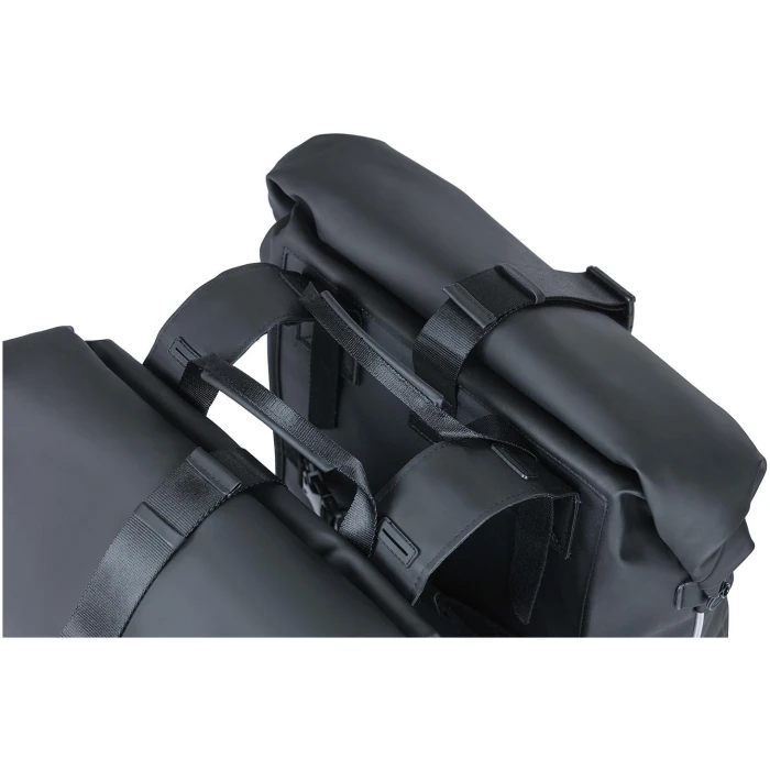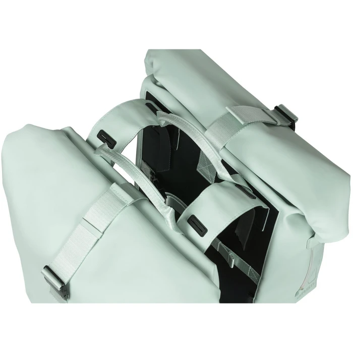 Basil Soho Dobbel sideveske er et stilfullt valg med overflate i Soft Shell. En moderne og flott veske helt utenom det anlige, med nedrullbar topp som gjør den vanntett i henhold til IPX3 standarden.