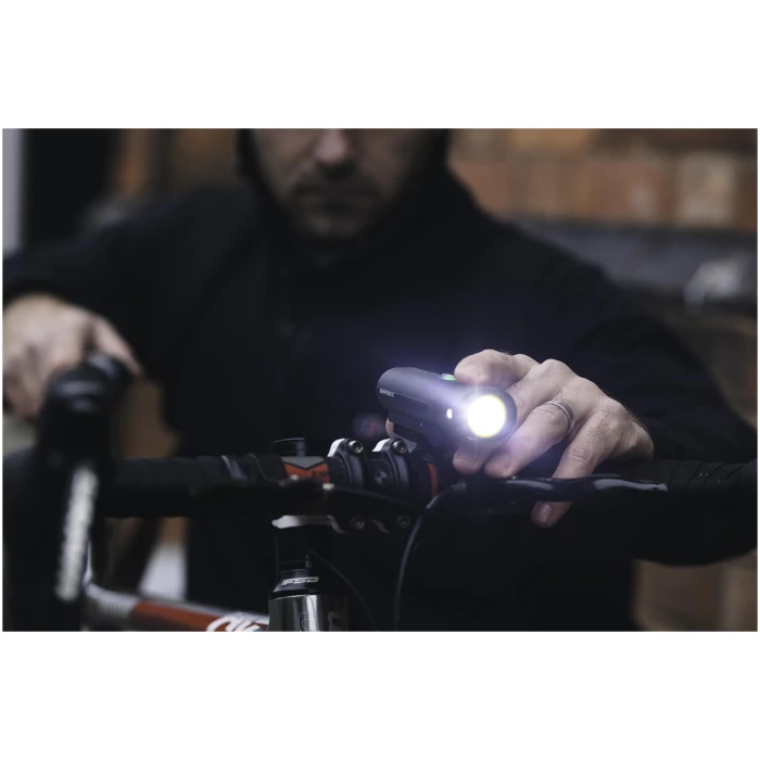 Meget kraftfull frontlykt med opptil 800 lumens gjør ALLEY F-800 til en perfekt frontlykt. Enkel montering av og på sykkelen.