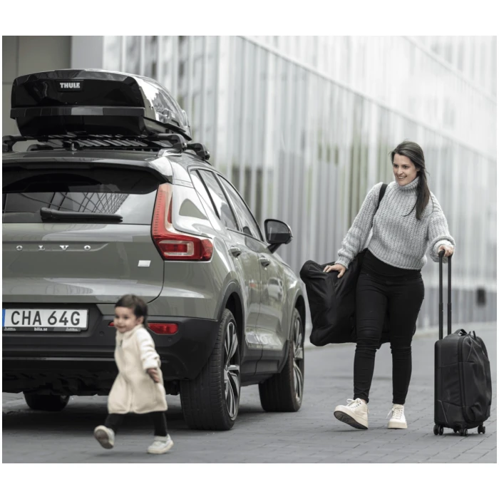 Thule Motion 3 er en stilig og romslig takboks designet for moderne eventyrere, som kombinerer en slank, aerodynamisk silhuett med robust funksjonalitet.